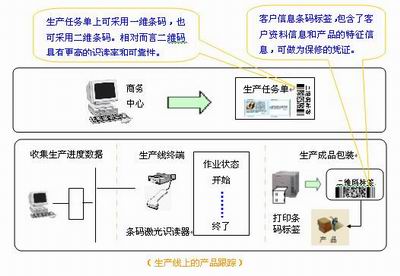 在日常生产中,对产品的生产过程进行跟踪。首先由商务中心下达生产任务单,任务单跟随相应的产品进行流动。然后每一生产环节开始时,用生产线终端扫描任务单上的条码,更改数据库中的产品状态。最后产品下线包装时,打印并粘贴产品的客户信息条码。