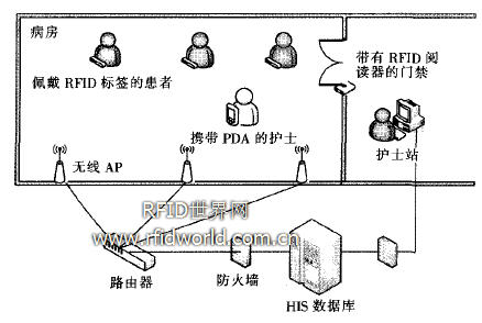 图1 基于RFlD的无线护理信息系统工作环境设计